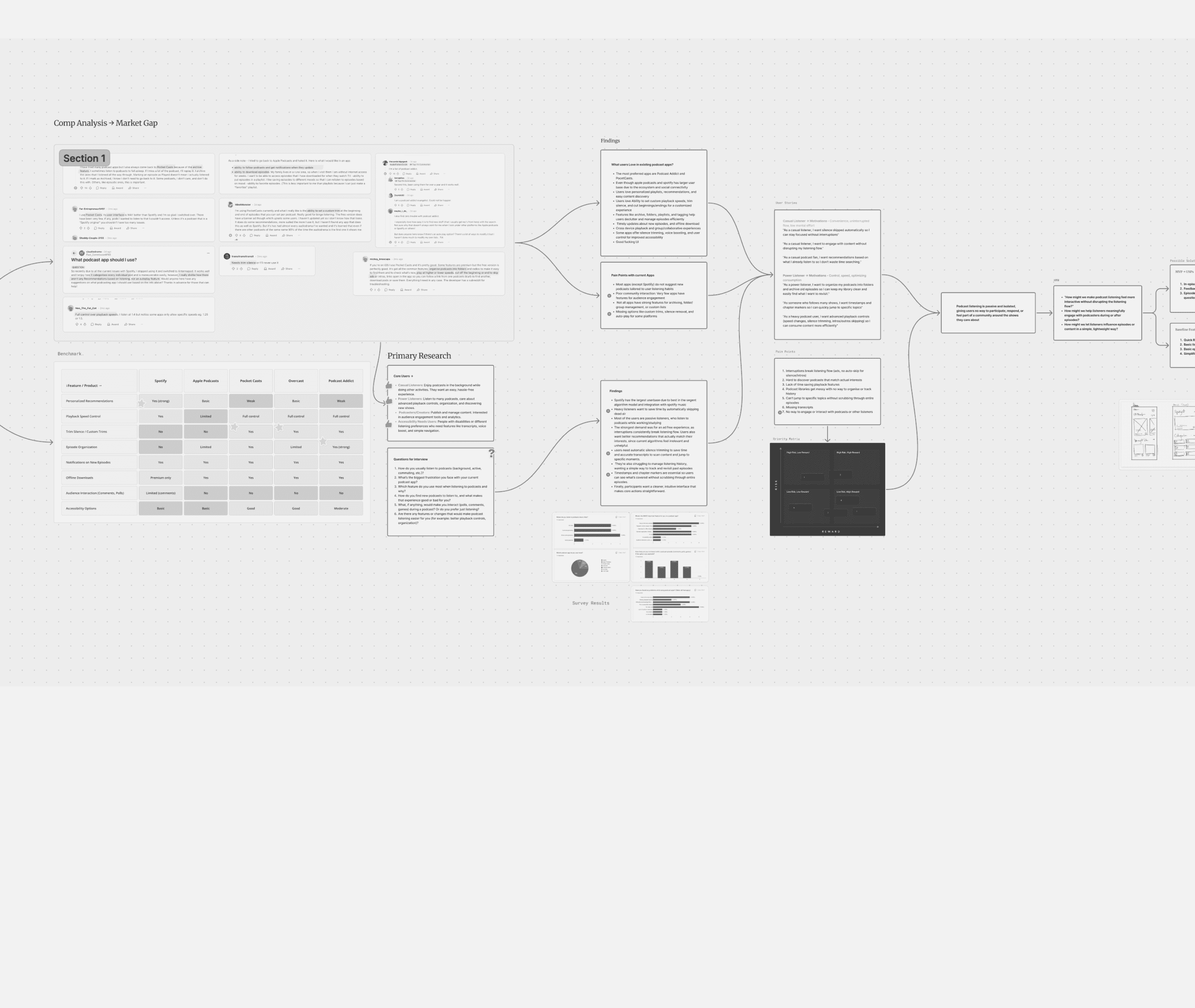 Early research focused on understanding how people currently experience podcasts and where that experience breaks down. I combined secondary research, app analysis, and informal surveys to uncover behavioral gaps